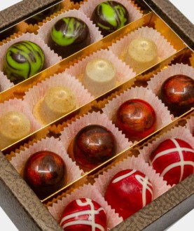 18,00 €Dolce assortimento di praline artigianali: passion fruit, caffè, pistacchio e lampone. Ganache morbide, cioccolato selezionato e lavorazione nel nostro laboratorio per un’esperienza di gusto elegante e autentica.