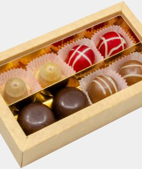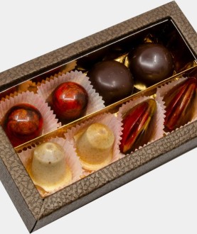 10,00 €Dolce momento: elegante confezione da 8 praline artigianali in 4 gusti: rhum, caffè, cocco e passion fruit.