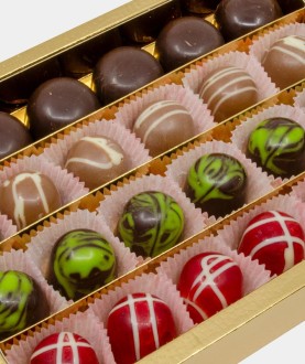 26,00 €Selezione Golosa: 24 praline artigianali in 4 gusti – rhum, pistacchio, caramello e lampone. Cioccolato Ecuador e ingredienti di alta qualità.