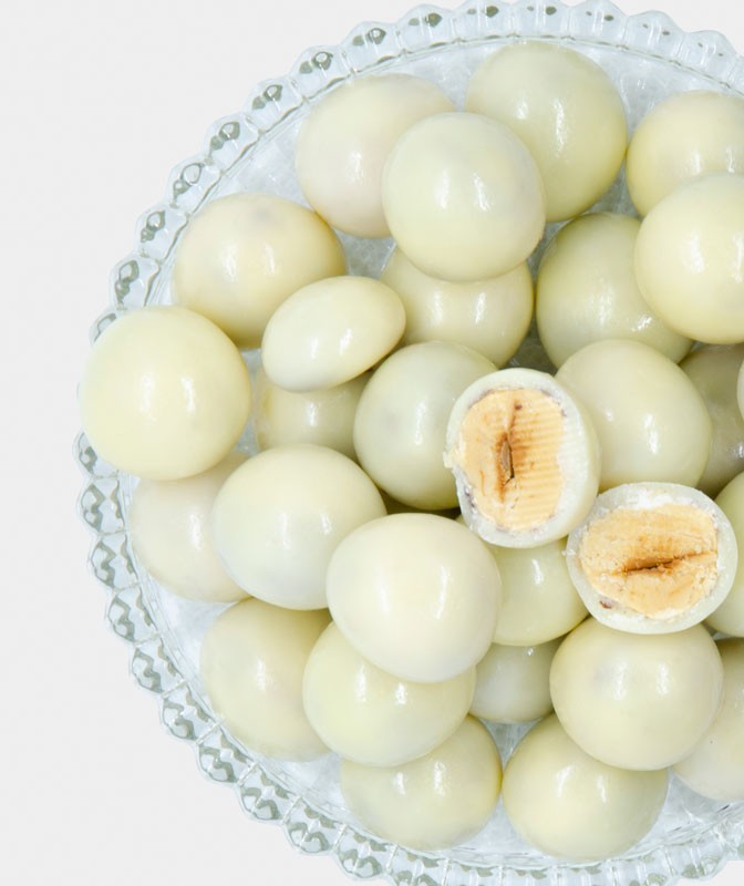 I dragee alla nocciola e cioccolato bianco sono un’elegante specialità artigianale realizzata con Nocciole Piemonte IGP delle Langhe, accuratamente tostate e avvolte in uno strato cremoso di cioccolato bianco.