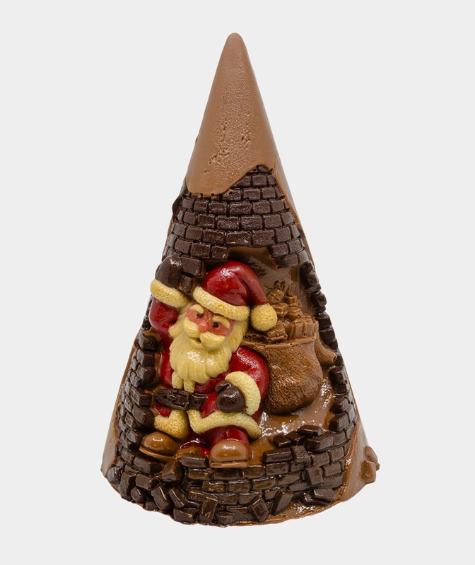 Ogni dettaglio, dal fuoco vivo alla figura di Babbo Natale, è modellato con cura per dare vita a una piccola opera d’arte commestibile.