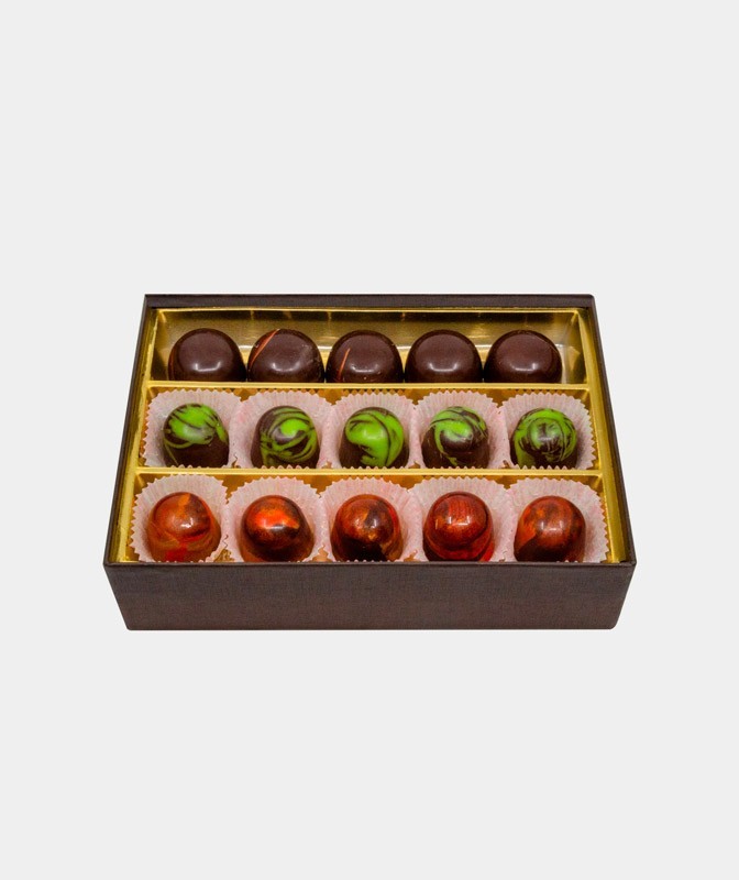 Al suo interno, una selezione finemente curata di praline artigianali, ognuna realizzata a mano nel nostro laboratorio con ingredienti selezionati e cioccolato di altissima qualità. Ogni boccone è una scoperta, un viaggio attraverso sapori ricercati e consistenze sorprendenti: